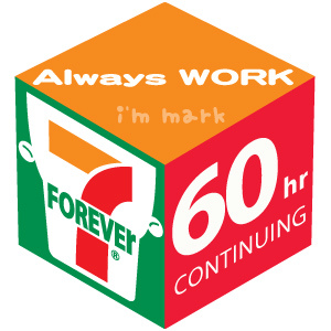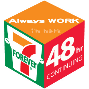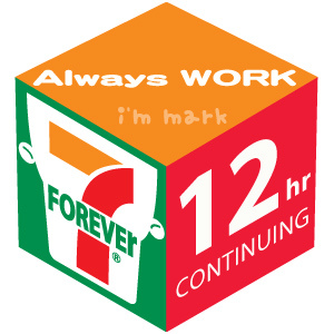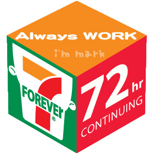 那是個令人噁心的經驗,我希望這輩子不要再遇到,當時我根本就覺得我可以當24小時便利商店的最佳代言人。在此我為自己的這段不堪回首的往事與大家做一個分享;但我也相信比我悲慘的人絕對大有人在,因此也特別藉由大家都很熟悉的7-11作為藥引,為大家製作了一個msn大頭貼,你可以依照你自己曾創造的連續上班記錄,選擇適合你的時數下載,在此也祝福大家永遠不要打破自己的記錄... @_@