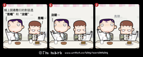 一晃眼,《人人有腰靠》在我成天擔心會不會得罪高層人士的狀況下,也走到第200靠了。馬克在漫畫裡除了爆肝、熬夜、吃虧之外,好像就沒有其他形象了,眼看越演越悲情好像也沒其它辦法,誰叫菜就是該死呢……