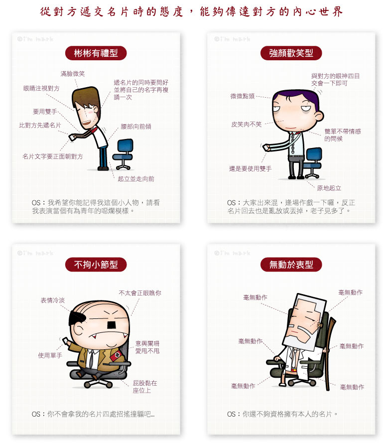 打從我當學生打工開始至今,所收到的名片大約也有數千張,不過說真的,大部份我早已不記得誰是誰了,不過就我吞吐過為數不算太少的名片經驗,我絕對有資格來為大家靠腰一下這職場中關於名片的禮數與注意事項...