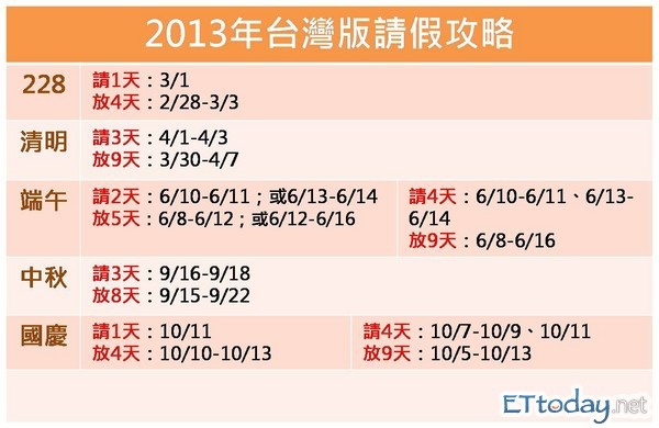 馬克說:今年的連假其實不少,以下提供一則連假攻略圖,願大家當個快樂的連假勞工!