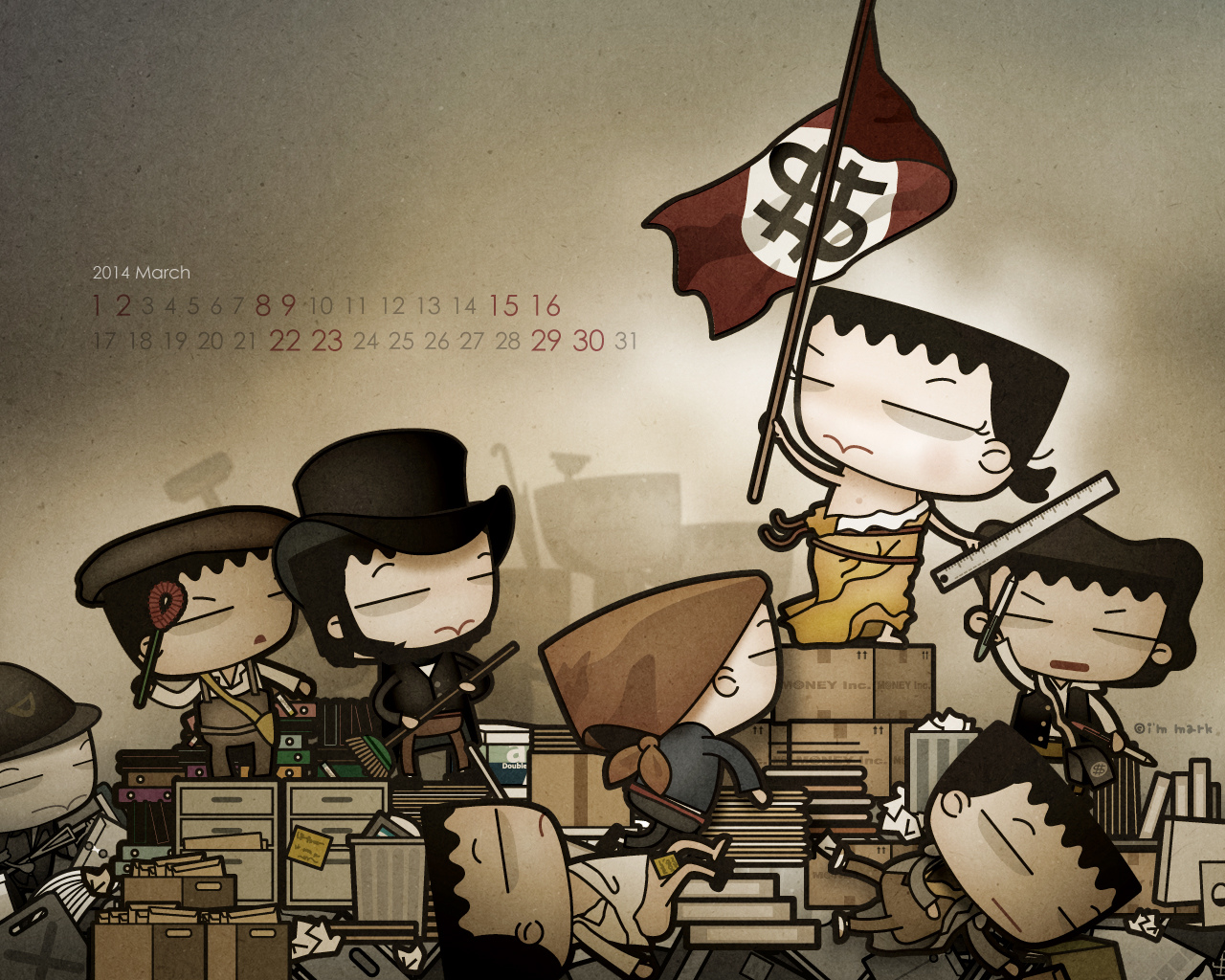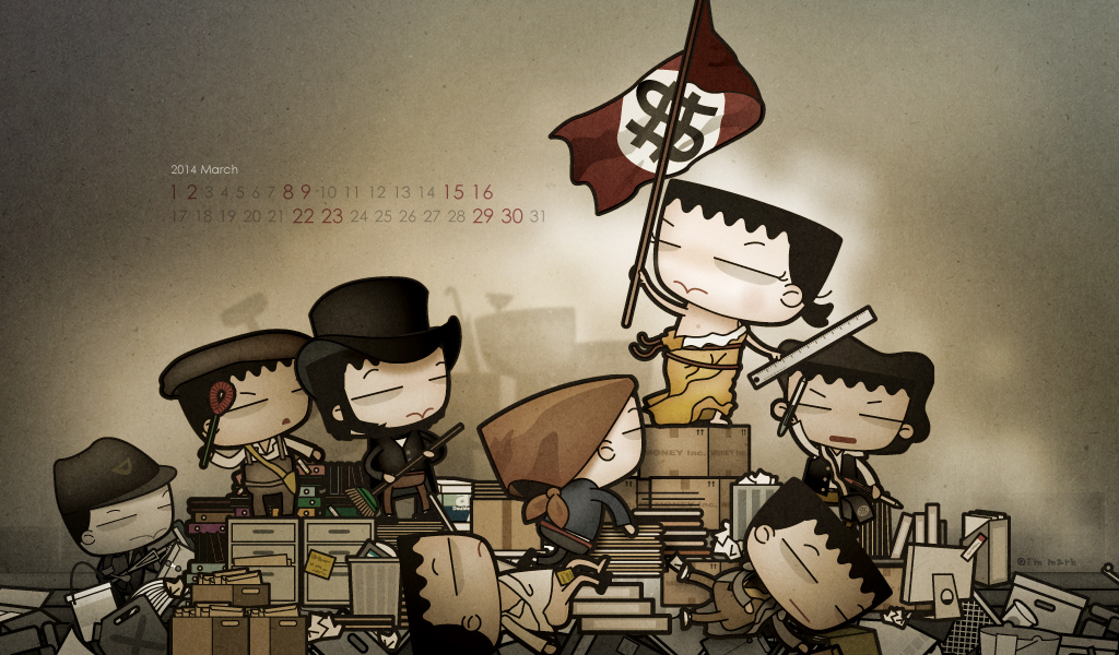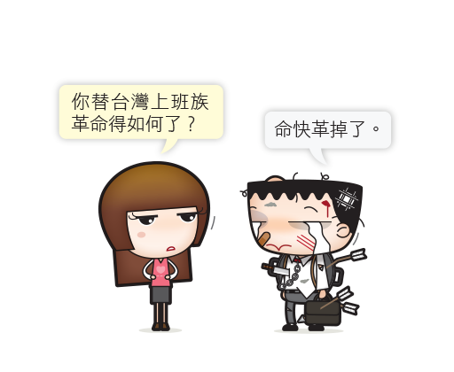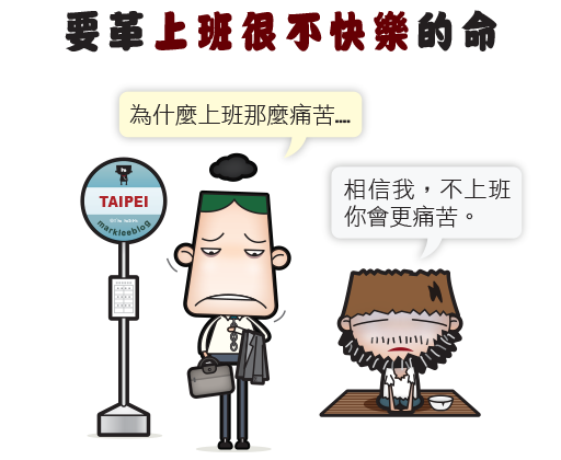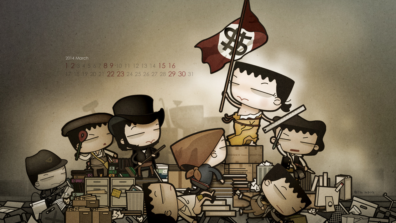 赫然發現,這2014年已經過了六分之一了,每次到了製作桌布時,就很容易多愁善感於時間過得真快。想想為上班族靠腰也靠了六個年頭,當初創作這些圖文,確實也不自量力的想要匡正我在職場中看到的某些怪異傳統,確實也自以為是的想要藉由嘲諷嬉笑的方式推翻些什麼,應該也算種另類革命,至於我想要革些什麼命?主要是下面五個。