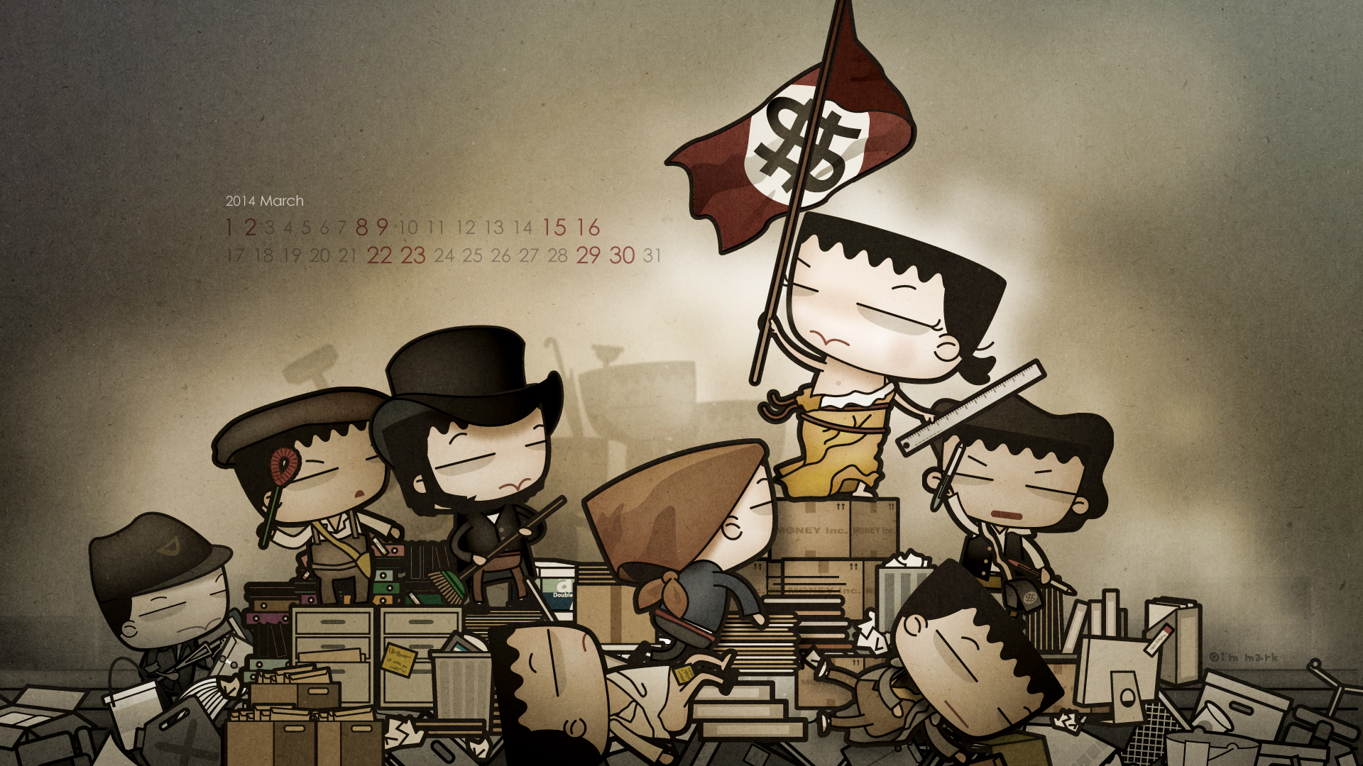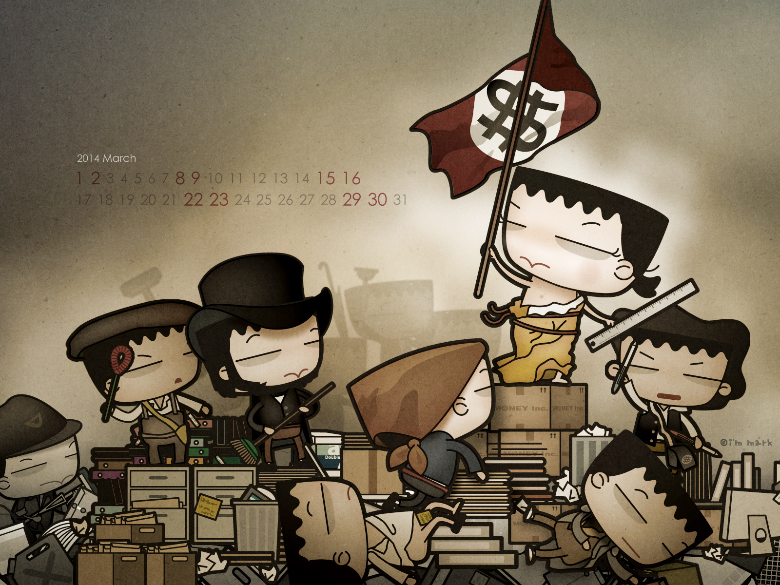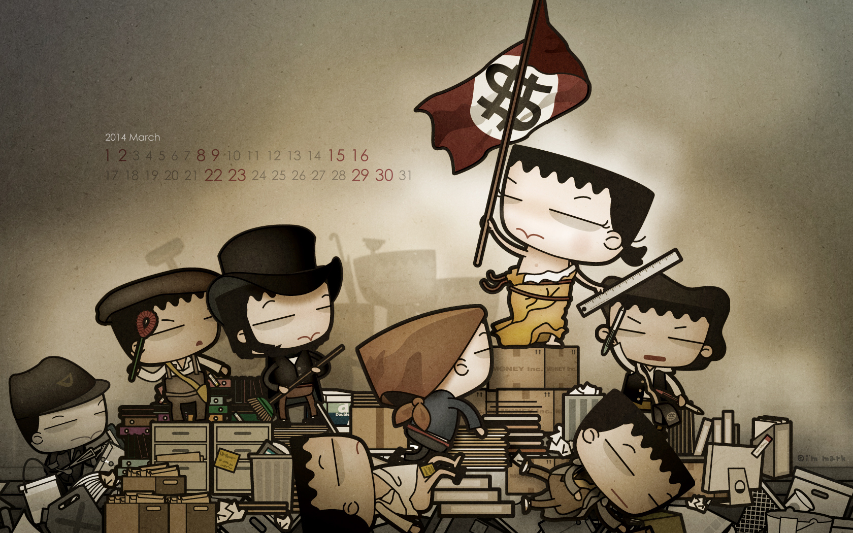 赫然發現,這2014年已經過了六分之一了,每次到了製作桌布時,就很容易多愁善感於時間過得真快。想想為上班族靠腰也靠了六個年頭,當初創作這些圖文,確實也不自量力的想要匡正我在職場中看到的某些怪異傳統,確實也自以為是的想要藉由嘲諷嬉笑的方式推翻些什麼,應該也算種另類革命,至於我想要革些什麼命?主要是下面五個。
