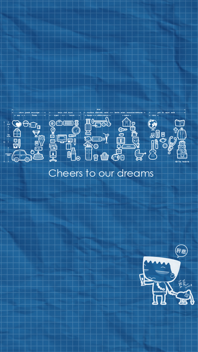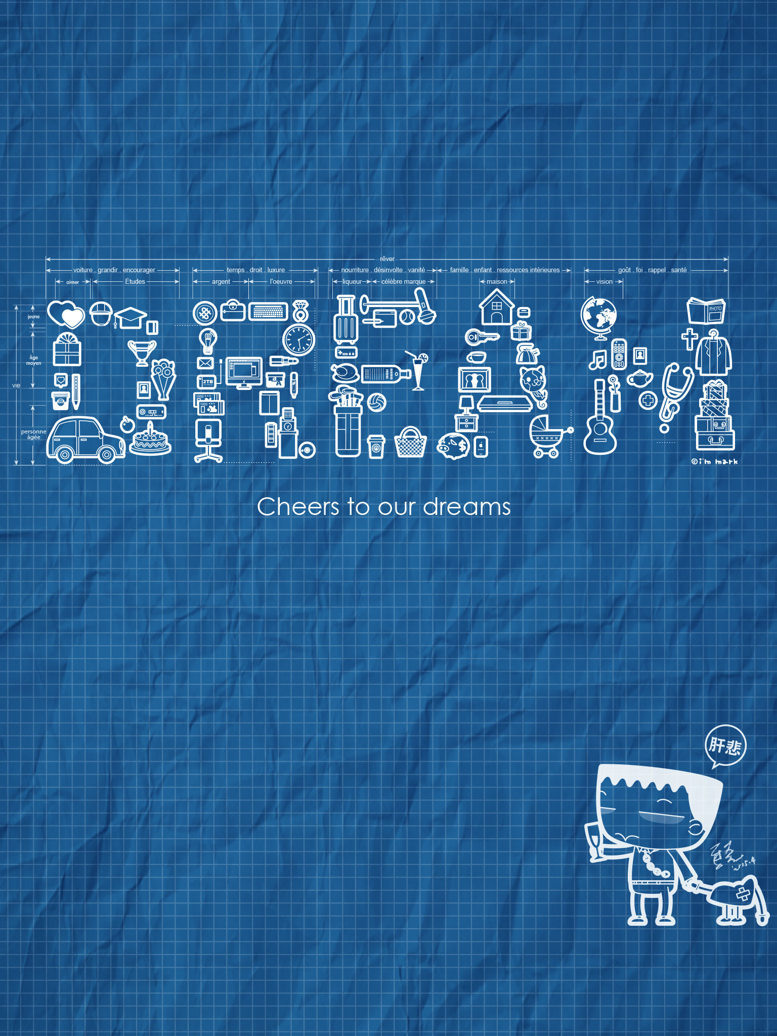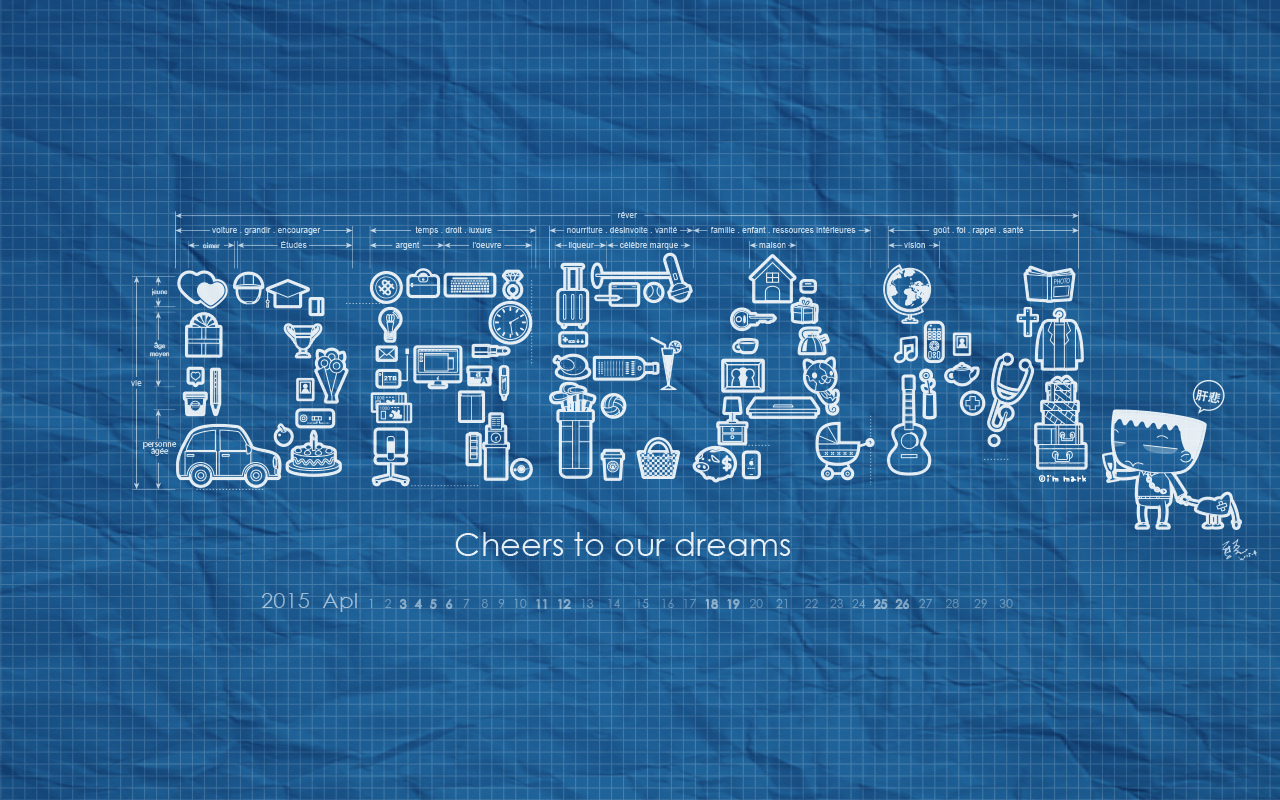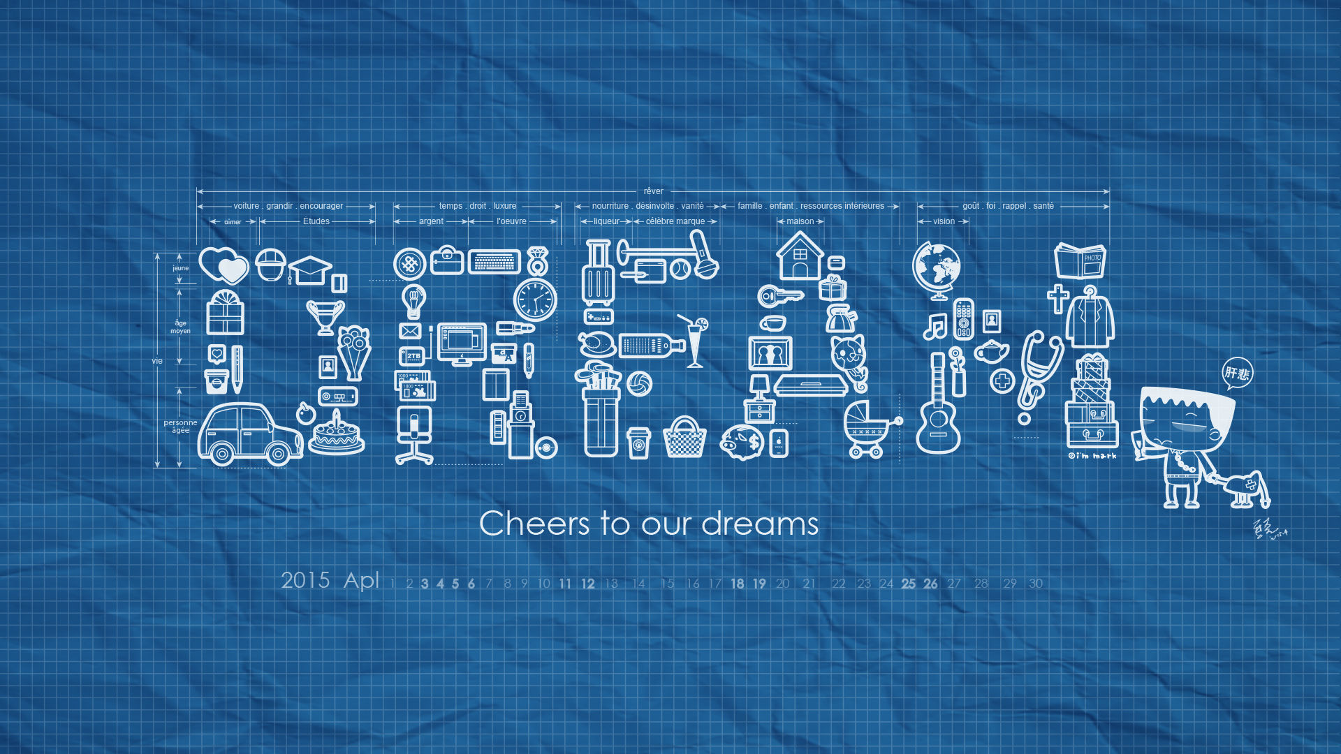 四月桌布來了,我不確定這張夢想藍圖中是否有著你的夢想,但我確定大家都該為著自己心中那個美好的夢想努力堅持著,大家加油吧!為我們的夢想而(肝悲)乾杯!