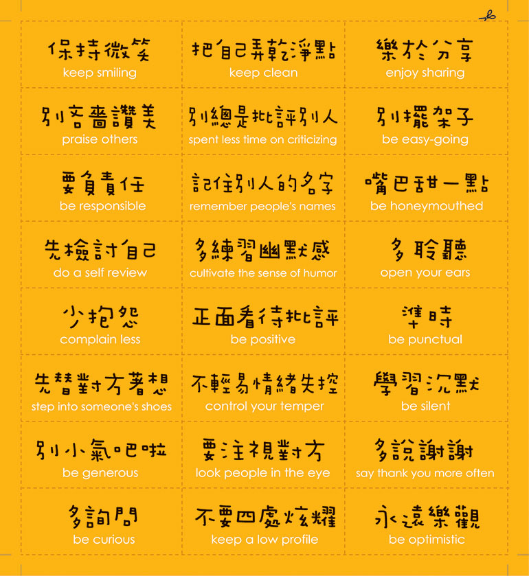 以下小卡是我參考坊間經典書籍、吸收大師格言與回顧自身經驗後所彙整出來的心得。別低估這24個老生常談,若你願意隨身攜帶並確實做到,相信我,你的職場人際關係絕對會無往不利。