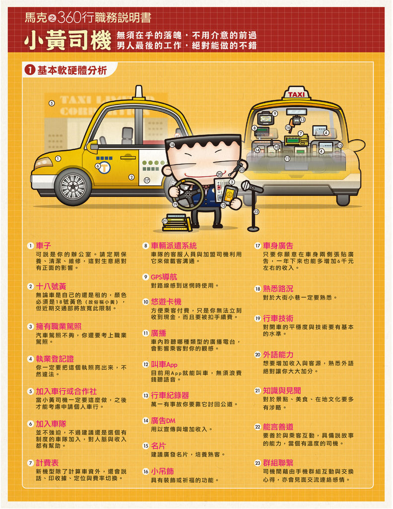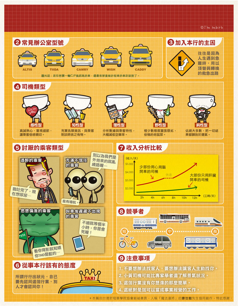 (特別感謝台灣計程車學院協會副秘書長,人稱「魔法運將」康世能先生協同創作)