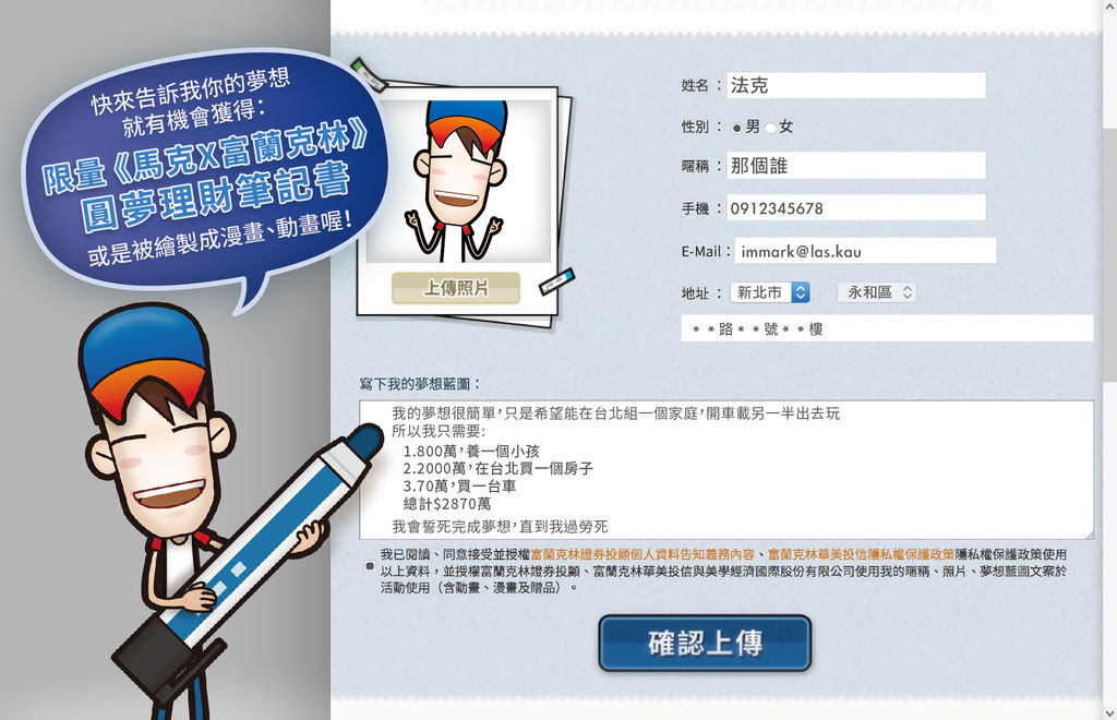 就有機會獲得限量《馬克X富蘭克林圓夢理財筆記書》,還有可能被繪製成漫畫、動畫喔!