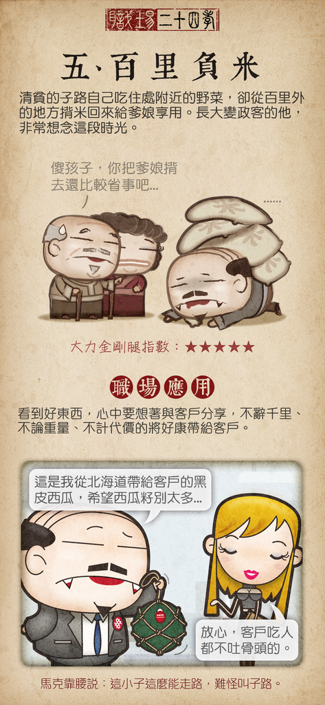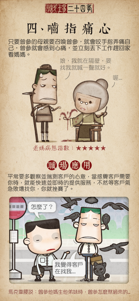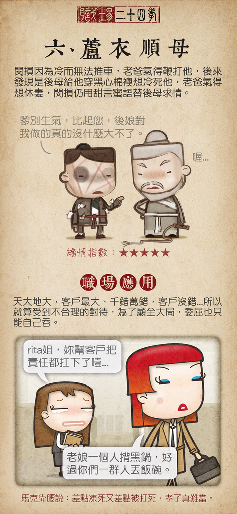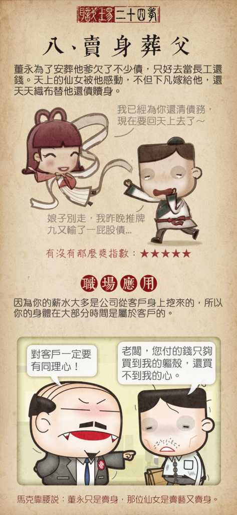 內容是大家耳熟能詳的二十四孝,讓我感觸良多的是在現代職場也是如此啊...