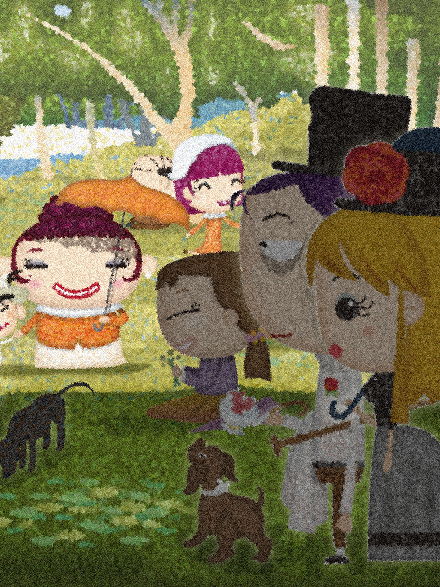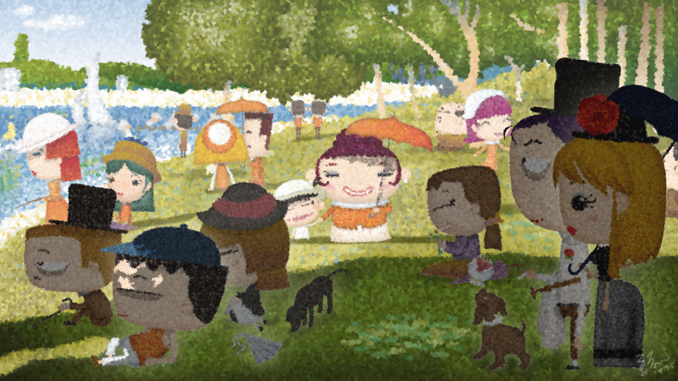 這次桌布很明顯是抄襲自秀拉(Georges-Pierre Seurat),雖然我個人比較喜歡“致敬”這個形容詞。