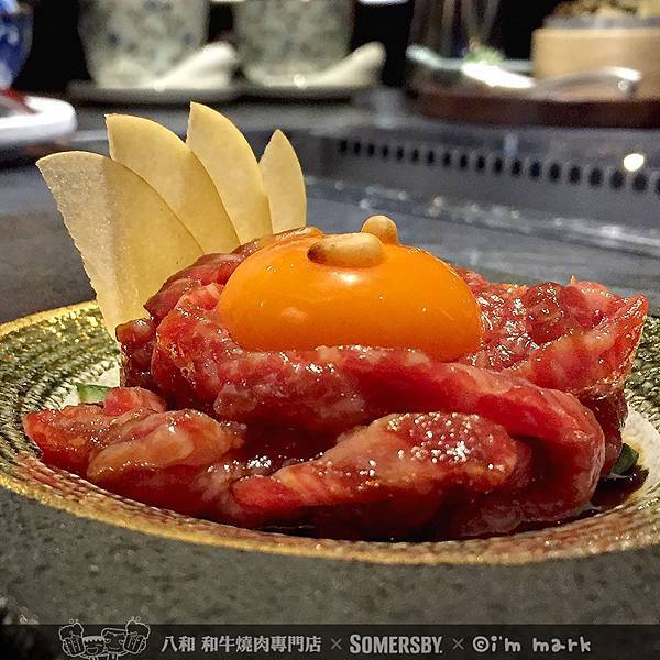 ▲韓式生拌牛肉,用鮮脆的水果、苗栗有機蛋黃