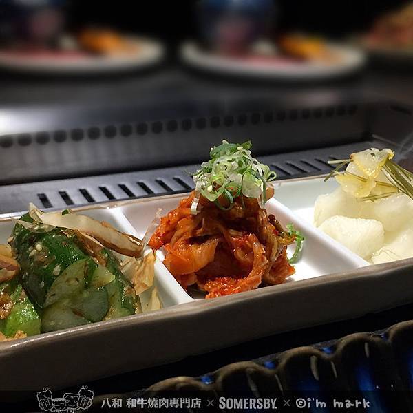 ▲八和自家醃製的柴魚蒜香小黃瓜、柚香蘿蔔跟韓式泡菜