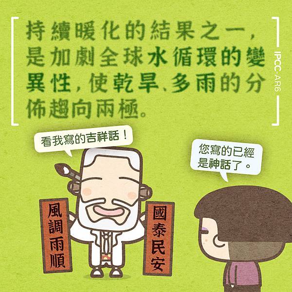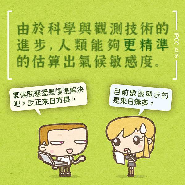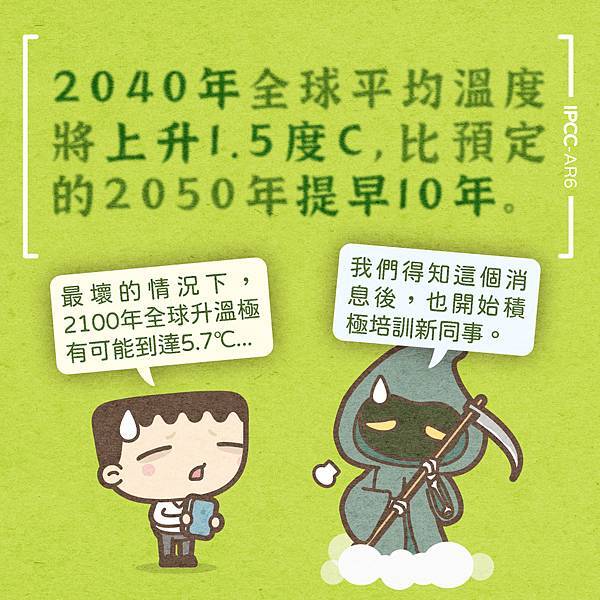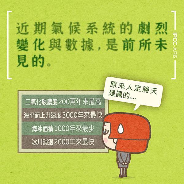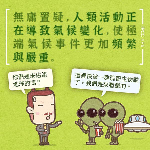 這是這個系列的最後一篇創作。我用圖說的方式,概略的陳述IPCC(聯合國政府間氣候變遷專門委員會)在上週發表的第六次評估報告(AR6)。
