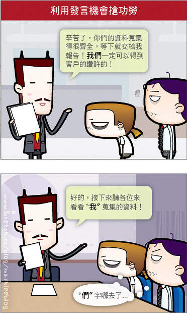 ps 今天原本預告是要貼【八卦篇】的,但是後來覺得這個題目實在可以當作一個專題來做系列探討,擇日再與大家分享囉,今天還是先來瞧瞧關於搶功勞的靠腰吧。
