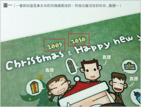 昨天,就在我寫到第兩百一十二張卡片的時候(原子筆都快長繭了),我突然發現卡片上有一個讓我幾乎尿失禁的錯誤(如圖一),絕望之餘我立刻連絡印刷廠重印卡片(所以這次成本快要邁向一萬元了),但昨天上午我已經寄出去了第一批卡片大約一百多張(這次寄件順序是以地區區分,第一批以國外與台北市為主),而且目前寫好的卡片也有快一百張(絕對都有寫超過五個字以上)....各位請原諒我,我真的沒有全部重寫的勇氣(有勇氣可能會斷氣),所以會有兩百多位網友將會收到“錯誤版”的卡片(就當做我永遠的污點吧),接下來的四百多張才會是正確版(印刷廠看我可憐,今天會把卡片趕好給我),只是各位的卡片會更晚才能收到(這也快要算是我的一種傳統了)....