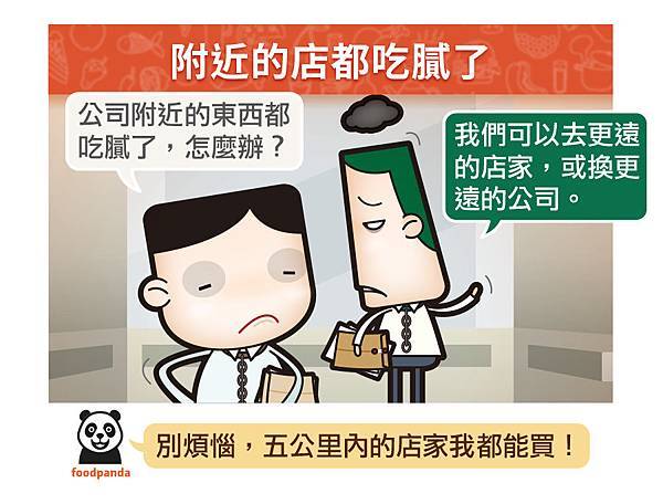 你隨時都能用foodpanda幫你外送五公里內的餐廳美食噎!