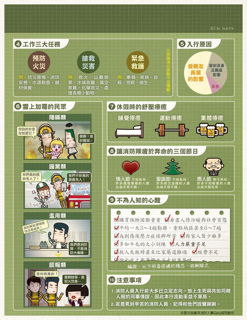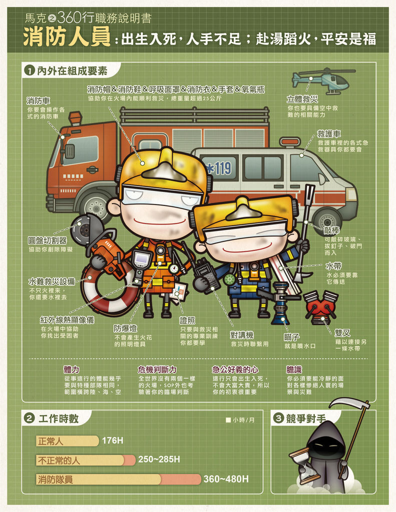 在人手不夠的情況下得對抗各種重大的災害,工作時經常得面臨生死交關,