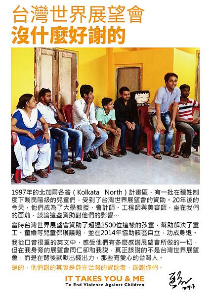邀請你,現在就與馬克、Cherng、Duncan一起支持「終止兒童受暴 你我挺身做到」,