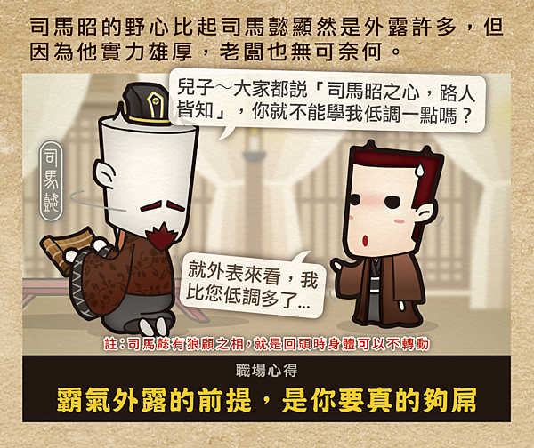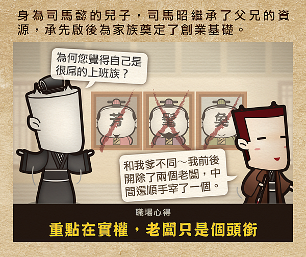 3.消滅敵人、剷除異己這些事都難不倒司馬昭,並且知人善用、各司其職,確實是智勇雙全之人。